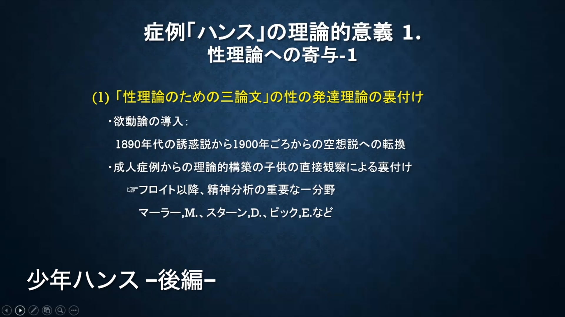 少年ハンス(前編):総田純次氏 2021.09.13 2024.09.07 総田 純次 この動画を視聴するにはログインが必要です。 関連動画集 少年ハンス(後編):総田純次氏 ヒステリー研究を読む:清野百合氏 フロイト『夢解釈』の世界:福本修氏 「あるパラノイア事例の自伝的記述についての精神分析的注釈」を読む:増尾徳行氏 フロイトを読む:藤山直樹氏 少年ハンス(後編):総田純次氏 前の記事 精神医学における診断分類:西山豪氏 次の記事